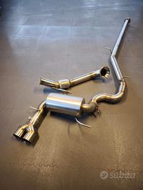 Downpipe, centrale e terminale da 76mm realizzata in AF Preparazioni per Audi RS3 8p completamente in Acciao Inox, composto da V-Band e terminale regolabile doppia uscita da 80mm. Disponibile coibentazione al downpipe su richiesta con aggiunta di 300€.
