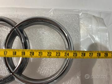Loghi ORIGINALI Audi A4. Cromati argento. Logo frontale e posteriore ORIGINALE Audi A4 modello B9 dimensioni visibili sulle foto. Logo anteriore perfetto ( ad incastro). Logo posteriore perfetto da incollare con silicone. Disponibili altre foto su richiesta.