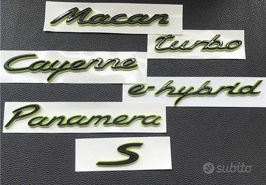 Loghi PORSCHE logo scritta nero lucido opaco Per i seguenti modelli PORSCHE Taycan Macan Cayenne Panamera 718 Boxster Cayman 911 Carrera turbo 4s GTS in colorazione nero lucido , nero opaco , e argento , da euro 29 singola S possibilità di aggiungere scritte, spedizione in tutta italia per info pvt. Disponibile anche Griglia rs calandra mascherina calotte specchietti coprimozzi luci cortesia tappini portachiavi ecc Grazie