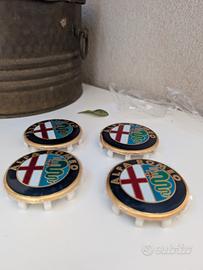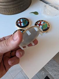 Vendo 4 loghi per ruote alfa Romeo da incastro per cerchi. Diametro 60mm (6 cm) prodotto nuovo ancora con pellicola. Vendo per errato acquisto.