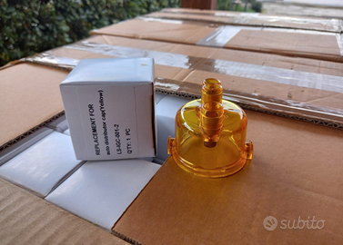 1.400 calotte spinterogeno nuove, ancora nelle loro scatole originali. Si tratta di articoli molto ricercati dagli appassionati perché sono TRASPARENTI, permettendo di vedere la scintilla scoccare all'interno durante il funzionamento del motore. Il lotto è assortito in 4 colorazioni traslucide: Trasparente (Clear) Rosso (Red) Blu (Blue) Giallo (Yellow) Configurazione: 3 poli (1 ingresso bobina + 2 uscite candele). Adatte a tutti i modelli di Fiat 500 e 126 Condizioni: NUOVE, scatolate singolarmente. Prezzo totale per l'intero stock: euro 350
