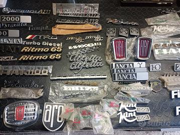 metto in vendita in blocco per sgombero questo lotto di quasi 100 PZ di fregi e stemmi per auto d'epoca, per la.maggior parte nuovi. sono presenti pezzi per fiat lancia alfa romeo mini VW ecc in alcuni possono mancare i dadi di fissaggio (persi nelle varie movimentazioni qualcuno presenta piccole imperfezioni date dal tempo e dalla.movimentazione si vende in blocco per sgombero no perditempo