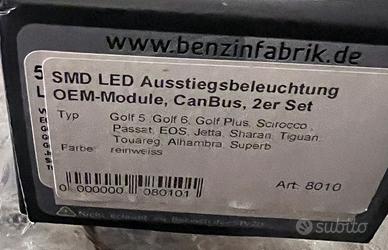 Luci SMD LED sotto porta per Golf 5 Golf 6, Golf Plus, Scirocco, Passat, EOS, Jetta, Sharan, Tiguan, Touareg, Alhambra, etc. Marca Benzinfabrik, due pezzi, Mai montate.