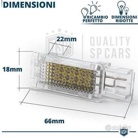 2 Luci LED Vano Piedi Posteriori per Mercedes GLA (X156) | Placchette Led COMPLETE 6500K Bianco Ghiaccio | CANbus, Plug & Play - Ricambio Perfetto | Installazione Plug & Play - Luce Bianca Potente | 18 LED SMD - NO Errori Avaria Luci | CANbus - Omologate | Resistenti ad Acqua e Polveri COMPATIBILITÀ: LUCI VANO PIEDI POSTERIORE: - MERCEDES GLA X156 (dal 2013>) ISTRUZIONI DI MONTAGGIO: - Rimuovere le attuali placchette, aiutandosi, se necessario, con un cacciavite, infilando la punta nella parte laterale della placca e facendo pressione verso l'esterno: la placchetta si sgancerà e verrà fuori. - Scollegare il cavo e staccare definitivamente la placchetta - Collegare al cavo la nuova PLACCHETTA LED, e riposizionarla all' interno dell'alloggiamento. Ripetere la stessa operazione con la seconda. Dettagli Tecnici - IL PACCO INCLUDE: 2 Placchette LED - COLORE: 6.500K Bianco Ghiaccio - CARATTERISTICA: Canbus No Error - ATTACCO: Come Originale - TECNOLOGIA: Full LED - UTILIZZO: Vano Piedi - EFFICIENZA: 18 LED SMD 3528, 288 LUM. - MONTAGGIO: Plug and Play (Solo Collegamento) - MATERIALE: Abs Pressofuso, Contatti Alluminio - RESISTENZA: Tested, Getti D'acqua Comuni - DURATA STIMATA: +50.000h - SPECIFICHE AGGIUNTIVE: Omologazione, Dot Sae E-Mark PER INFO CONTATTARE AL 3927091031 ANCHE LINEA WhatsApp OPPURE VIA E-MAIL: rtautoitalia2018@libero.it CONSEGNA: - Effettuiamo Spedizioni 24-48H in TUTTA ITALIA - Ritiro in Sede con Possibilità di Visionare il Prodotto - Vendiamo solo Articoli Nuovi PAGAMENTI: - PayPal - Con Carta - Bonifico Bancario - Alla Consegna con Contrassegno