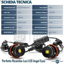 Kit Full LED ANGEL EYES Professionale PER BMW SERIE 1 E87 | Trasformazione Anelli Luci di Posizione BIANCHE 6000K-6500K | NO Error CANbus 32W 1000LM - LUCE BIANCA | Colorazione ""Ghiacciata"" 6000K-6500K - PLUG & PLAY | Stessa Presa della Lampadina Alogena di Serie. Facile installazione, NO MODIFICHE - NO ERRORI | Sistema CANBUS Integrato - 32W 1.000 LUMEN | Più Potenza di illuminazione negli Anelli, dal 40 al 60% INFO: Kit Conversione Luci LED Angel Eyes Bianco Ghiaccio di Nuova Generazione, sono Lampadine LED Professionali che si Sostituiscono alle lampadine alogene di Serie Illuminando gli Anelli dei Fari Bmw con una Luce LED Bianca e Densa, sono CANbus ovvero NON creano Errori sul display della Vettura e non Necessitano di Adattamenti sul Veicolo per l'installazione, sono PLUG and PLAY, (solo Collegamento). COMPATIBILITÀ: - BMW SERIE 1 E87 Fino al 02/2007 PRE RESTYLING MONTAGGIO: - SMONTAGGIO DELLA PROPRIA ALOGENA Svitando le viti di Bloccaggio. - CONTROLLO: Collegare solo la presa del led ( PLUG AND PLAY ); se non ci sono problemi, procedere al montaggio. - BLOCCARE SULL'AUTO : Avvitando le nuove viti in dotazione. SCHEDA TECNICA: - Colore (Temperatura K): 6000K-6500K - Materiale: Componenti in Alluminio Pressofuso e Metalli per Conduzione Aeronautici - Chip Led interni: Cree - Dimensioni: 60mm Lunghezza / 35mm Spessore Peso: 109gr (Singola) - Tecnologia: Full LED - Resistenza: IP65 ( Acqua e Polveri ) - Lumen (Resa Luminosa): 1000 Lumen - Numero Led: 8 LED (4 + 4) - W: 32W - Voltaggio: 9-28V - Temperatura di Funzionamento: -40°+80°C PER INFO CONTATTARE AL 3927091031 ANCHE LINEA WhatsApp OPPURE VIA E-MAIL: rtautoitalia2018@libero.it CONSEGNA: - Effettuiamo Spedizioni 24-48H in TUTTA ITALIA - Ritiro in Sede con Possibilità di Visionare il Prodotto - Vendiamo solo Articoli Nuovi PAGAMENTI: - PayPal - Con Carta - Bonifico Bancario - Alla Consegna con Contrassegno
