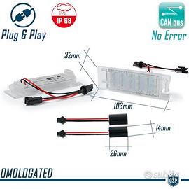 2 Placche Targa FULL LED per FERRARI 488, Scocca in ABS Nera, Lente in Policarbonato e Parti in Alluminio. CANBUS NO Errori, NO Modifiche. - Perfetto Rimpiazzo, Omologate (Plug and Play) - 18 LED SMD, con Raggio di Azione di 180° - Luminosità Garantita - Provviste di Guarnizione Contro polvere e Acqua - Certificazione di Conformità E-MARK Dot Sae E8 Placche Targa FULL LED di ultima generazione con Lente in POLICARBONATO e SCOCCA in ABS, 18 LED SMD, realizzate con led driver e filtri antisfarfallio INCORPORATI, per una tensione constante e priva di FASTIDIOSI SFARFALLII, conserva una presa identica al proprio mezzo, per un montaggio privo di modifiche, semplicemente in sostituizione alle proprie/i. COMPATIBILITÀ: - FERRARI 488 (DAL 2015) ISTRUZIONI DI MONTAGGIO: - Rimuovere le attuali placche led, aiutandosi, se necessario con un cacciavite, infilando la punta nella parte laterale della placca e facendo pressione verso l'esterno: la placca verrà si sgancerà e verrà fuori. - Scollegare il cavo e staccare definitivamente la placca. - Collegare al cavo la nuova PLACCA LED, e riposizionarla all' interno dell'alloggiamento. Ripetere la stessa operazione con la seconda targa. DETTAGLI TECNICI: - N° LED INTERNI : 2W X 18LED SMD 3528 ( ogni placca ) - Voltage: 12V - Colore (K): 6.500K - BIANCO GHIACCIO - Resistente all' acqua: SI - Peso: 28 Gr (Singolo) - Vita stimata: 50.000 H (Tested) - 2 Filtri interni di regolazione tensione per evitare SFARFALLII - Temperatura di lavoro Compresa tra - 40°C / +65°C PER INFO CONTATTARE AL 3927091031 ANCHE LINEA WhatsApp OPPURE VIA E-MAIL: rtautoitalia2018@libero.it CONSEGNA: - Effettuiamo Spedizioni 24-48H in TUTTA ITALIA - Ritiro in Sede con Possibilità di Visionare il Prodotto - Vendiamo solo Articoli Nuovi PAGAMENTI: - PayPal - Con Carta - Bonifico Bancario - Alla Consegna con Contrassegno