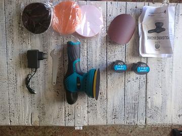 Lucidatore auto con due batterie e relativo caricatore, accessori per lucidatura, nuovo con contenitore originale