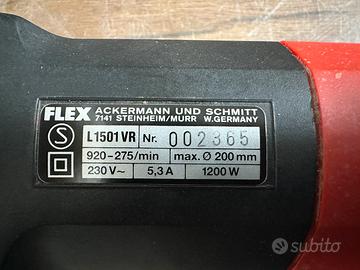 Vendo causa inutilizzo in ottimo stato lucidatrice professionale modello FLEX L 1501 VR da 1200 W. Ottima per grandi superfici dove può lavorare con variatore a bassi giri da 275 a 920 giri min ottima anche da utilizzare con spazzole satinatrici. Possibilità di spedizione a carico acquirente.