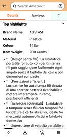 Design senza fili】La lucidatrice portatile for auto con design senza fili può raggiungere facilmente ogni angolo senza il fastidio dei cavi e con dimensioni compatte * 【Prestazioni efficienti】 Lucidatrice for auto senza fili dotata di batteria ricaricabile e motore interamente in rame, prestazioni efficienti * 【Accessori essenziali】 Lucidatrice a tampone senza fili con tamponi for lucidatura e carta abrasiva, ideale for meccanici automobilistici e fai-da-te domestico * 【Interruttore di velocità variabile a 2 livelli】 La lucidatrice for buffer for auto con velocità variabile a 2 livelli, regola la velocità in base alle tue specifiche esigenze di lavoro * 【Funzione】 La ceratrice e lucidatrice può riparare efficacemente i graffi sulla superficie 'auto, utilizzata anche for la ceratura e la lucidatura dei pavimenti