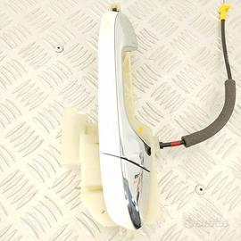 Maniglia esterna porta posteriore sinistra originale smontata da Kia Sportage 5 porte, versione con accesso keyless. Il ricambio è in buone condizioni generali, completo di cavo e connettore per sensore smart key. Verniciata in bianco con inserto cromato, la maniglia è pronta per il montaggio e perfettamente funzionante. Questo ricambio è noto come maniglia porta sinistra posteriore Kia Sportage, conosciuto anche come impugnatura esterna posteriore lato guida, leva apertura porta posteriore, braccetto porta sinistra, ricambio OEM apertura posteriore sinistra o maniglia smart key per Kia Sportage. L’articolo è adatto a vetture dotate di sistema keyless entry, senza foro per chiave meccanica.È ideale per sostituire maniglie danneggiate, graffiate o scolorite dal sole o dagli agenti atmosferici, ripristinando funzionalità e estetica originale. La struttura interna è completa di molla, supporto e meccanismo di rientro automatico, mentre il connettore è intatto, pronto per essere collegato all’impianto originale del veicolo. La marcatura sul cablaggio riporta il codice 1902:9, che identifica il lotto di produzione. Ricambio testato e verificato, pronto all’installazione diretta.