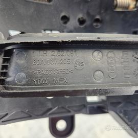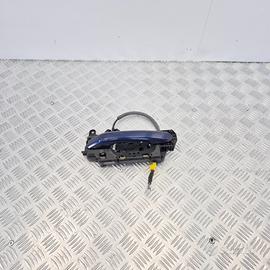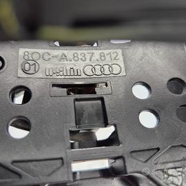 Maniglia esterna originale per porta posteriore sinistra (SX) Audi Q5 FY, completa di serratura elettrica, cablaggio e guscio verniciato. Il ricambio è marchiato OEM Audi con codice principale 80C 837 812, e prodotto da U-Shin, fornitore ufficiale del gruppo VAG (Volkswagen Audi Group).Il guscio esterno è verniciato blu metallizzato, codice 80A 837 239, mentre la struttura interna porta codice tecnico 80A 837 205. La maniglia comprende leva di apertura esterna, supporti, molle, cablaggio con connettore originale, e meccanismo di ritorno completamente funzionante.
