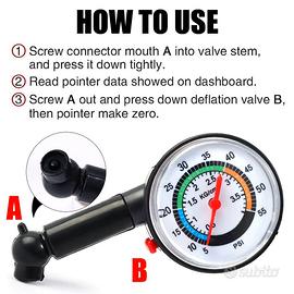 Manometro per misurare pressione degli pneumatici di auto, moto e biciclette.