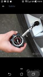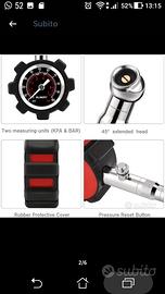 Manometro portatile pressione gomme adatto sia per auto e moto,con testina rotante e inclinazione a 45°,una volta presa la misura,rimane fissa per il controllo fino a quando non si preme il pulsante laterale che resetta e fa uscire l'aria.Sul rétro c'è anche un fondo scala in Bar e Psi,con protezione in gomma.
