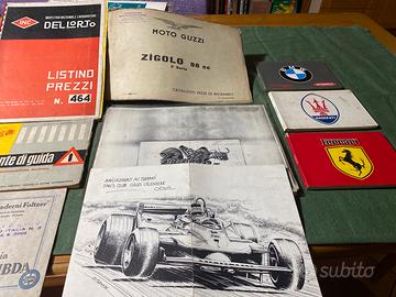 Lancia delta integrale catalogo ricambi clienti nuovo in ristampa euro 28. Lancia delta 4VD catalogo ricambi clienti in ristampa nuovo euro 28 catalogo parti di ricambio originale per Lancia beta berlina anni 70. Euro 25 note tecniche informative e catalogo ricambio originale per Lancia gamma berlina e coupé 2000-2005 a carburatori e a iniezione euro 30 Manuali di servizio originali per carburatori Webber: valori di registrazione farfalle per dispositivo avviamento manuale su carburatori monocorpo, doppio corpo sincronizzati, doppio corpo differenziati otto pagine euro 18. Norme per smontaggio rimontaggio e registrazione del dispositivo di avviamento semiautomatico per carburatori 32 AD F e 32 ADFA 34 AD F e 36 e 38 AD L una delle applicazioni per Fiat 131 1974, 12 pagine euro 18 manuale di servizio per i seguenti carburatori: 32 DF D. 32 DFE. 32 DFM. 32 DIF. 32 DGV. 32 e 36 DFV. 32 e 36 DGV originale 1970, 20 pagine euro 25 Manuale di servizio per carburatori 32 DIR originale 20 pagine euro 25. listino prezzi numero 464 industria nazionale carburatori dell’orto ottime condizioni 65 pagine euro 18 depliant di quattro pagine carburatori Webber anni 70 € 10 catalogo ricambio originale per moto Guzzi singolo 98 c.c. seconda serie euro 30 manuale di uso manutenzione per vespa 50 anni 70, fotocopiato euro 15 alcuni schemi elettrici per vespe d’epoca euro 10 cadauno. Libretto di 80 pagine anni 50 60 per il conseguimento della patente di guida euro 12 piccolo volumetto quaderni foltzer una ventina di pagine per LanciaDILAMBDA. 24 PAGINE di un club francese dedicato al grande Shelby Neuv con una dedica autografata da un componente euro 10 tre volumetti di auto capital formato tascabile, circa 100 pagine cadauno, con bellissime illustrazioni dedicate alla produzione BMW-Maserati-Ferrari 10 € cadauno. Depliant originale del circuito di Fiorano Ferrari, anno 1993 catalogo ricambi autocarroISO 400 euro 30