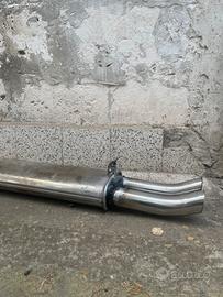 Marmitta sportiva a doppio scarico artigianale, in acciaio inox.
