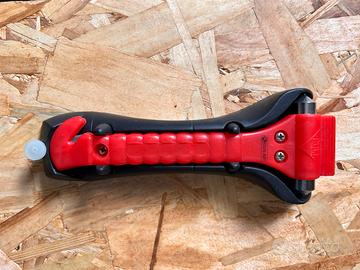 Martellino frangi vetro con taglia cintura. Atrezzo molto utile da tenere in auto.