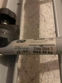 Menabo STEELBIKE 3 portabici posteriore per 3 biciclette, fissaggio con cinghie , completo di tutti gli accessori e cinghie. In foto le compatibilità. Eventuali costi di spedizione da valutare .