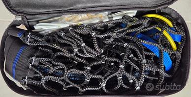 NUOVE MAI USATE Catene da neve ad alta performance in materiale composito, facili da montare e smontare; la loro struttura esclusiva assicura una motricità ottimale su neve e ghiaccio, in trazione, propulsione, frenata e in curva Sono omologate per l’Italia UNI 11313:2010; usufruiscono anche di omologazioni relativi ai seguenti paesi : Francia, Svizzera, Belgio, Spagna, Portogallo, Polonia. In oltre, sono conformi all'omologazione europea EN16662-1:2032