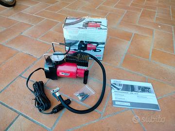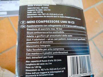 Mini Compressore Da Auto Ultimate Speed UMK 10 C2. Come nuovo. Vendo causa inutilizzo. Comprende: scatola originale, istruzioni, presa 12V per auto, manometro per controllare la pressione di gonfiaggio, ugelli adattatori per gonfiare ruote di bicicletta e spillo per palloni.