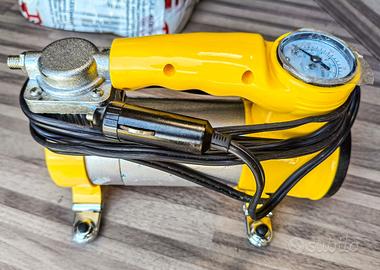 Compressore portatile per auto, 12 Volt., con attacco accendi sigari, 150W., pressione massima 150ps, con display che indica la pressione, luce lampeggiante gialla.