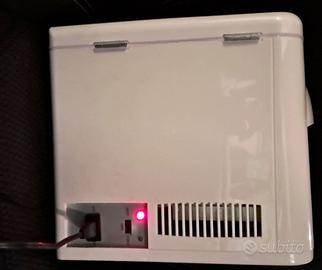 Mini Frigo per auto 4 Lt. marca Amstrad mod FR977S usato ma ben tenuto, funzione caldo o freddo selezionando l'apposito pulsante che indicherà luce rossa per la funzione caldo e verde per quella fredda. E' raccomandato che i cibi o bevande da introdurre siano già fredde o calde per ottenere un buon funzionamento. Spedito nella sua confezione originale compreso cavo di alimentazione per auto che và nella presa accendino e libretto di istruzioni.