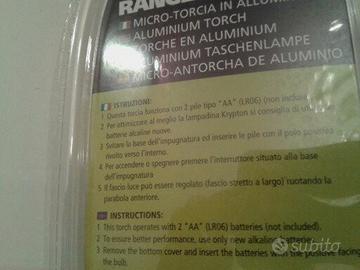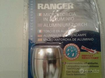 Vendo mini torcia in alluminio TA-1 Ranger. Impermeabile. Antiurto. Lampadina super luminosa Kripton. Focalizzatore del fascio luminoso. Impugnatura con zigrinatura antiscivolo. Funziona con N. 2 batterie da 1,5 Volt AA incluse nell'offerta.