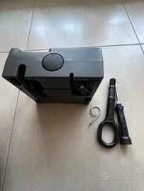 Minicompressore nuovo per auto, in custodia grigia polistirolo originale, comprensivo di gancio di traino, giravite e moletta. È relativo alla Golf 6.