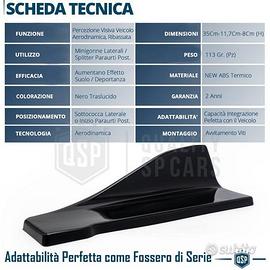 Minigonne Laterali Universali per Auto | Bandelle Laterali Migliorano la Percezione Visiva del Veicolo Rendendolo Basso e Aerodinamico | Splitter in Abs Nero Lucido. - LOOK D' IMPATTO | Rendono la Vettura Visivamente più Bassa e la fanno Percepire più Aerodinamica - AERODINAMICA | ad Elevate Velocità su Manti Stradali idonei favoriscono l'Effetto Suolo - ADATTABILITA' | Si Integrano Perfettamente al Veicolo come se fossero un Elemento di Serie - RESISTENZA | Materiali d' eccellenza conferiscono Elevata Resistenza allo Scolorimento e detriti da Viaggio INFO: Minigonne Laterali da usare come Elementi Aerodinamici, si applicano nella parte inferiore della Fiancata Auto; principalmente nascono per migliorare l'Effetto Suolo, cioè chiudendo lo spazio tra suolo e Autovettura, a Velocità Elevate aumentano l'aderenza della vettura al fondo stradale, oltre che per Conferire alla Tua Auto un Aspetto Rinnovato e Aggressivo, rendendola visivamente più Bassa e Aerodinamica. COMPATIBILITÀ: - UNIVERSALE Applicabili su qualsiasi veicolo (Auto, SUV, Camion), Adattabilità perfetta. DETTAGLI TECNICI: - Materiale: NEW ABS di Qualità - Colore: Nero - Finitura: Traslucida - Peso: 113Gr (Singolo) - Lunghezza 35 Cm - Larghezza 11,7 Cm - Altezza 8 Cm - Spessore 1,5 Cm - Temperatura di lavoro Compresa tra - 40°C / +65°C - Fissaggio: Ad Avvitamento - Condizioni: Nuovo - Confezionamento Originale: Scatola di Cartone PER INFO CONTATTARE AL 3927091031 ANCHE LINEA WhatsApp OPPURE VIA E-MAIL: rtautoitalia2018@libero.it CONSEGNA: - Effettuiamo Spedizioni 24-48H in TUTTA ITALIA - Ritiro in Sede con Possibilità di Visionare il Prodotto - Vendiamo solo Articoli Nuovi PAGAMENTI: - PayPal - Con Carta - Bonifico Bancario - Alla Consegna con Contrassegno