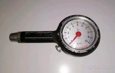 Misuratore di pressione vintage per pneumatici a bassa pressione fabbricato dalle officine "Allemano" di Torino. Oggetto anni 70 usato con inevitabili segni del tempo/d'usura, comunque ben conservato e venduto per puro collezionismo in quanto non testato.