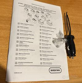 Vendo frigo portatile elettrico in alluminio Mobicool Q40 AC/DC, da 39 litri. 58 lunghezza x 44 altezza x 39 profondità 12 V e 230 V per auto, camion, barche, camper, van. Alimentazione a 12 V modificata da accendisigari a fusibiliera del furgone, ripristinabile con il suo accessorio accendisigari incluso (vedi foto). Incluso 1 fusibile di ricambio.