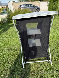 - ARMADIO PIEGHEVOLE - DIMENSIONI 60X53X97CM - TESSUTO POLIESTERE 600D - STRUTTURA IN ACCIAIO EFFETTO ALLUMINIO, TUBO DIA 19MM - FINITURA OPACA CON TUBO GRIGIO - RIPIANI MDF CARBONE - BORSA PER IL TRASPORTO CON APPENDIABITI