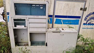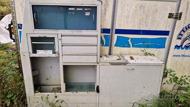 mobiletto laterale lato destro in lamiera con vari cassetti e sportelli , verniciato a polvere , smontato da vw transporter t4 adattabile anche ad altri mezzi