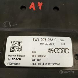 Centralina rete di bordo Audi BCM1 originale, codice 8W1 907 063 C, prodotta da Bosch per modelli Audi A4, A5, Q5, S4, S5 e SQ5 dal 2017 al 2024.Nota anche come body control module, modulo comfort, o centralina gestione rete dati, controlla funzioni come illuminazione, chiusura centralizzata, sensori di parcheggio (park aid system), tergicristalli e alimentazione moduli.Compatibile con versioni benzina, MHEV e PHEV.Ricambio OEM testato e pronto all’uso, ideale per il ripristino del sistema elettrico interno.
