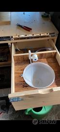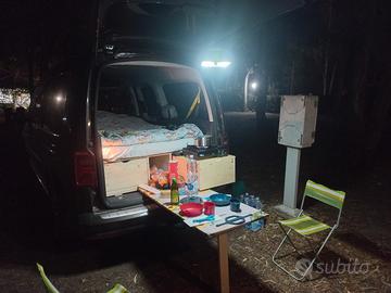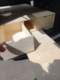 Vendiamo per passaggio a mezzo più grande un modulo di camperizzazione in legno con letto matrimoniale, tavolo a incastro e due cassetti con guide e chiusura. ideale per caddy maxi o simili