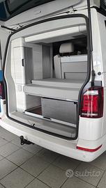 Modulo estraibile per Vw California fai da te, ma perfettamente funzionante. Tutto smontabile, si può usare anche solo il pianale e togliere i cassettoni. Blocco di scorrimento del pianale quando chiuso. Permette di organizzare al meglio il baule del Vw California.