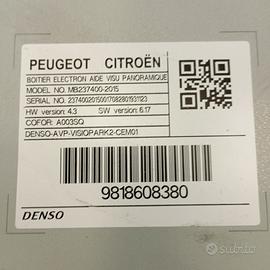 Modulo telecamera panoramica Visiopark 2 originale Denso, smontato da Peugeot 3008 II 2.0 BlueHDi 110kW anno 2019. Ricambio autentico in ottime condizioni generali, codice principale di riferimento 9818608380. Progettato per la gestione completa delle immagini delle telecamere a 360° nei sistemi di assistenza parcheggio PSA di ultima generazione. Ricambio originale OEM Peugeot Citroën DS Automobiles Centralina modulo telecamera panoramica Visiopark 2 Montaggio diretto senza necessità di modificheLa centralina Visiopark 2 gestisce l`elaborazione delle immagini provenienti dalle telecamere anteriori, posteriori e laterali, offrendo una visione a 360° per facilitare le manovre di parcheggio. Ricambio noto come modulo telecamera 360 gradi, centralina assistenza parcheggio, modulo visione panoramica, unità gestione immagini Visiopark, sistema telecamere surround view.