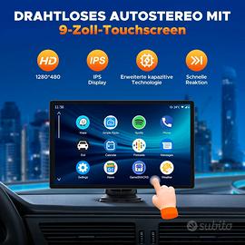 Volam Autoradio Portatile con Wireless A-pple Carplay & Android Auto, 9 Pollici Radio Auto Portatile con IPS Touchscreen, Auto Stereo Radio con Bluetooth 5.0/GPS/Controllo Vocale/Mirror Link/FM/AUX