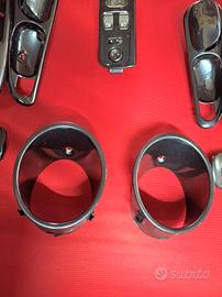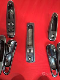 Set completo mostrine apriporta con alloggiamento tweeter, pulsantiera lato guida con comando quattro alzacristalli e chiusura centralizzata, consolle centrale con comando retronebbia, comando fendinebbia e regolazione Specchi Elettrici, comandi alzacristallo passeggero, comandi alzacristalli posteriori destro e sinistro, cannochiali cornici strumenti, tutti smontati da Alfa Romeo 156 1° serie 1998.