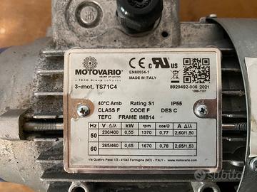 Motore Motovario Trifase TS71C4 + Motoriduttore Sw 040 I=20 Vendita causa inutilizzo. Mai usato. Senza garanzia