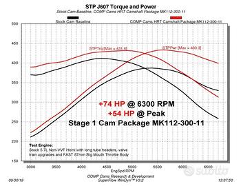 albero a camme: comp cam NSR stage 1 per motori hemi senza o escluco MDS, stage 1 stradale, non necessita la sostituzione delle molle valvola, guadagna circa 50 cv con la mappatura, curva di coppia con motore standard tra le foto(€ 650)
