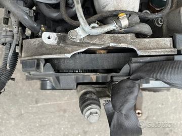 Carter copri cinghia in plastica e supporto posteriore in alluminio danneggiati, da sostituire