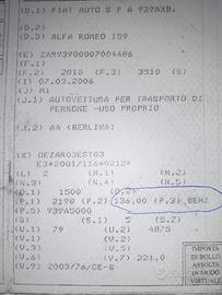motore alfa 159/brera/spider JTS 2.2 benzina. codice motore 939A5000. auto con 150000 km, ma motore rifatto completamente a km 74000 x mancanza olio (rottura coppa), frizione e volano rifatti da un anno. compatibile con opel Z22XER. disponibile anche cambio. disponibile anche parti esterne al motore da alfa 159