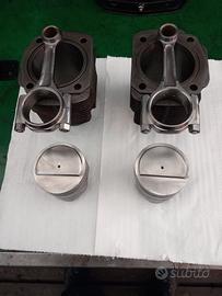 Motore nuovo fatto girare solo su banco, equilibrato, cilindrata 650 cc, alesaggio 77 mm, pistoni originali con tassello, monoblocco rinforzato, albero motore lucidato e alleggerito, volano alleggerito, valvole maggiorate (aspirazione 36 e scarico 32), albero a camme 110°, 38/78 con alzata valvole 9.8, carburatore doppio corpo da 32 monocondotto, pompa olio maggiorata con pescante modificato, marmitta nuova. Ritiro preferibilmente a mano dopo visione.