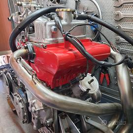 Motore elaborato 700 cc su monoblocco fiat 126 con testata a condotti sdoppiati ,valvole 33-39 in nimonic, scodellini valvole in titanio, cannette punterie telescopiche, pistoni stampati diametro 79,5,bielle H120, asse a camme colombo & bariani, equilibratura albero motore con volano alleggerito, carburatore weber dcoe 40 modificato, coppa olio abarth da 4 litri con prolunga pescante olio e carter anti sbattimento olio, spinterogeno con impulsore e accensione elettronica eliminando punte platinate e condensatore, ventola raffreddamento rinforzata, frizione con disco parastrappi, completo di bobina a doppia uscita , modulo accensione, pompa benzina elettrica e regolatore pressione benzina,