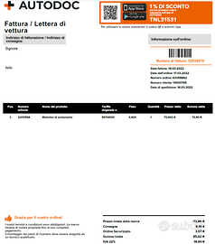 Prezzo Totale Fattura: €104,46 incluso IVA