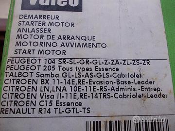 Per Peugeot 104 1.1-1.2-1.4,modelli prodotti dal 11/1984 al 07/1988,Peugeot 205,modelli a benzina prodotti fino al 1988,Talbot Samba Berlina e Cabriolet,vendo motorino per avviamento,marca "Paris Rhone-Valeo".Nuovo.