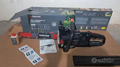 motosega da potatura a doppia batteria 40 v professionale parkside performance, si devono inserire 2 batterie da 20 V le comuni batteria che usate nei vostri utensili della parkside 20V. 5 anni di garanzia con scontrino nuovo MAI USATO. (VEDI FOTO ). tutto come in foto reali. prezzo 119,00 €. posso anche spedire al costo di 12,40 euro con corriere espresso tracciabile, per informazioni chiamare al cell.3 2 0 4 7 4 5 5 3 1 scrivi anche su Whatsapp.