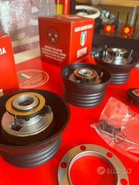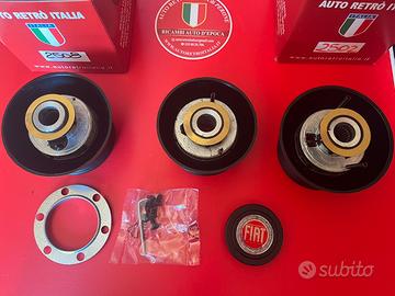 Mozzo volante disponibile per Fiat 124 e 850. Importante sapere anno e modello preciso della macchina. Nuovo in scatola completo di pulsante clacson con logo