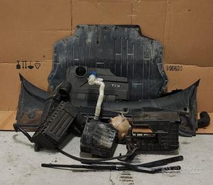 Calandra completa di radiatore, Cofano, Parafanghi, Paraurti anteriore completo, Tubi aria condizionata, gocciolatoio, fari, passaruota, vaschetta radiatore, scatola filtro aria, copri motore, bracci tergicristallo, copertura motore inferiore