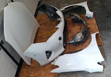 Muso Completo usato-Toyota Auris Hybrid-anno 2014/18-colore bianco-verniciatura non garantita-materiale in Disponibile esclusivamente in blocco-cofano-paraurti-parafanghi-fari-vaschette-varie plastiche-tubi aria condizionata-kit radiatori completo